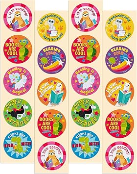 Amazon Com Reading Reward Stickers 1 5 Round Encouragement Stickers 100 Pack Reading Star Super Reader I Love Books More Librarians Teachers Classroom Education Doctor Dentist Office Rewards Office Products
