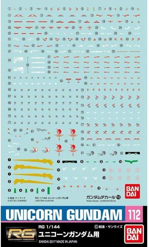 Amazon Com Bandai Model Kit 57372 57372 Decal 112 Rg Gundam Unicorn 1 144 21292 Toys Games
