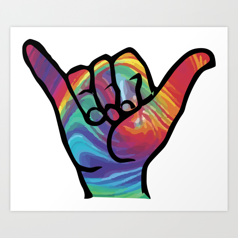 Shaka Hands With Tie Dye Trending Sticker Art Print By Alma Design Society6