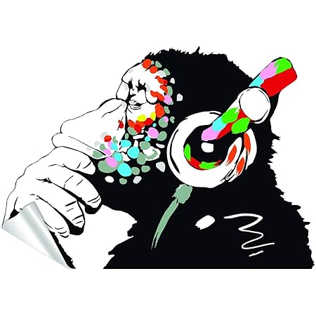 Amazon Com Banksy Thinking Monkey Sticker Art Vinyl Street Dj Baksy Wall Decal Headphones Chimp Music Thinker Graffiti Mural Boy Smart Decals Home Kitchen