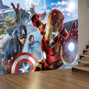 Marvel Avengers Iron Man Captain America Wall Mural Wallpaper Etsy