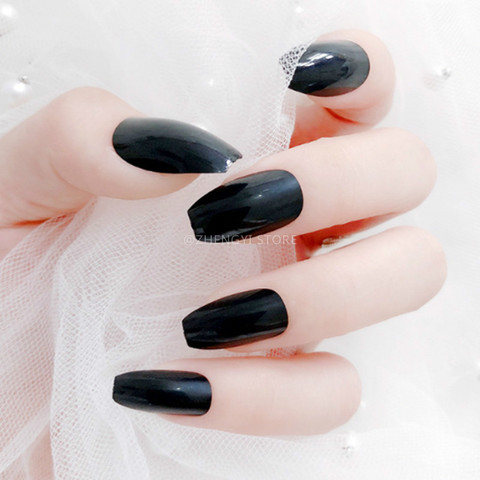 Buy Online 24pcs Long Black Ballerina Fake Nails Coffin White Clear Acrylic Nail Tips Extension Removable Artificial False Nails Adhesive Alitools