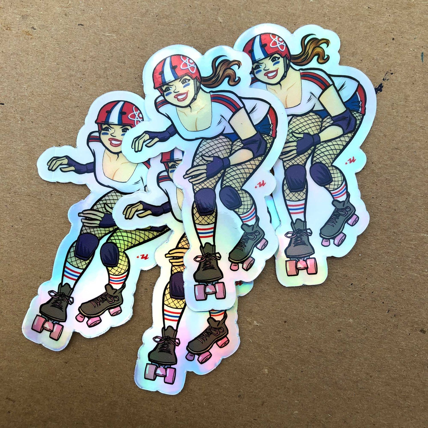 Roller Derby Holographic Sticker Atom Bomb Bikini