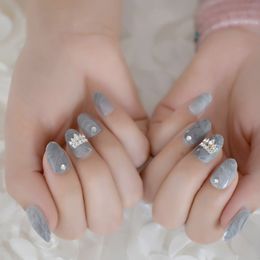 Amazon Com Fake Nails Short Oval Shape Marble White Acrylic Nail Art Tips Alloy Decoration Revit Design Z157 Beauty