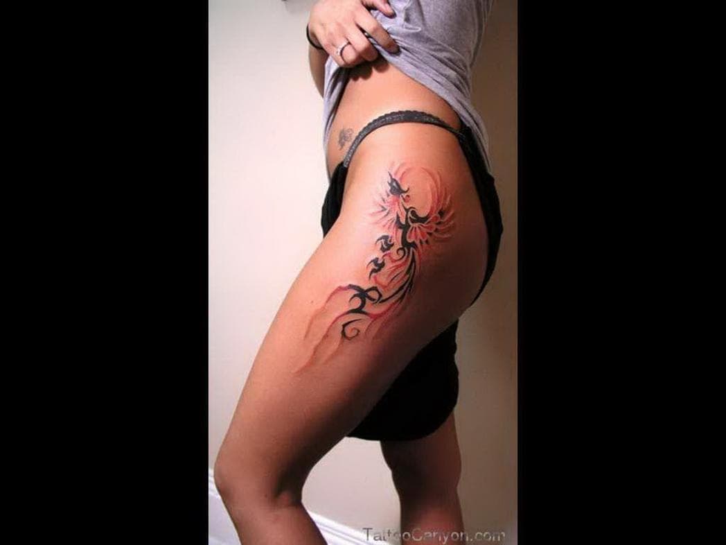 A tattoo on the back of your thigh is a sexy option if you want to draw attention to your lower.