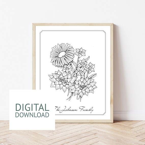 Digital Custom Family Birth Flower Bouquet Custom Birth Month Etsy
