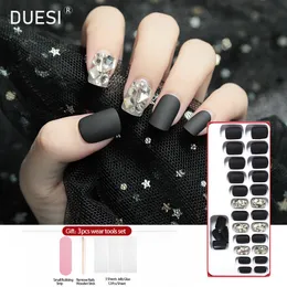 Amazon Com Edary False Nails Gothic Press On Nails Black Matte Fake Nails Square Full Cover Nail Art 24pcs For Women Beauty