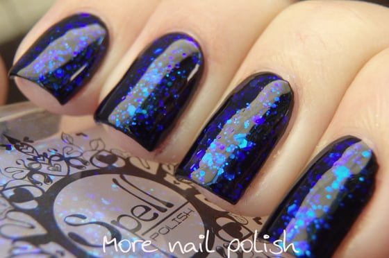 Top with matte top coat to keep the velvety finish or shine it up with a glossy top coat. Essie Borrowed and blue. Swatches - Left to Right - 1 Coat 2 coats and 2 coats topped with glossy Unicorn Magic.