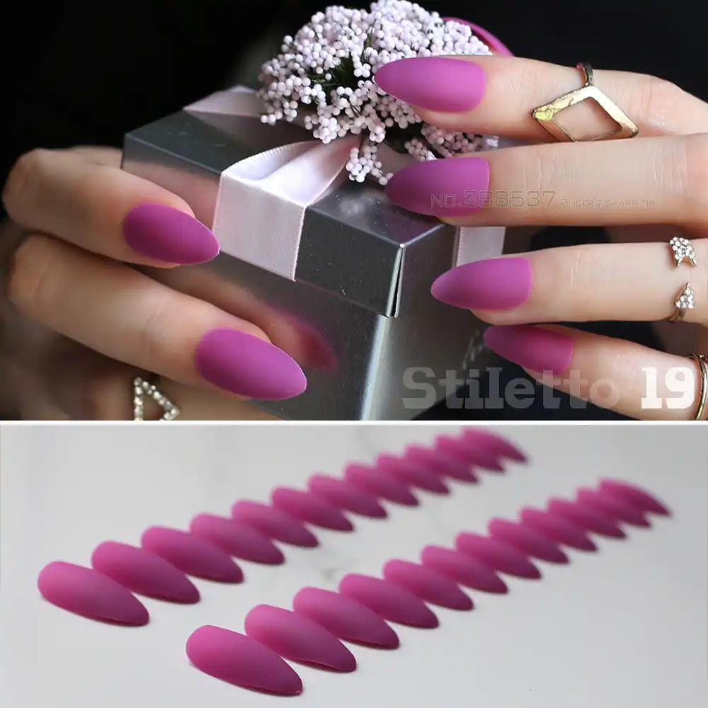 Buy Milanco False Nails Full Cover Matte Fake Nails Shape Nails Sharp Art 24pcs Stiletto Nail For Women Dark Purple Online At Low Prices In India Amazon In