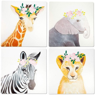 Amazon Com Little Baby Watercolor Animals Floral Crown Safari Prints Set Of 4 Unframed Nursery Decor Art 8x10 Option 2 Kitchen Dining